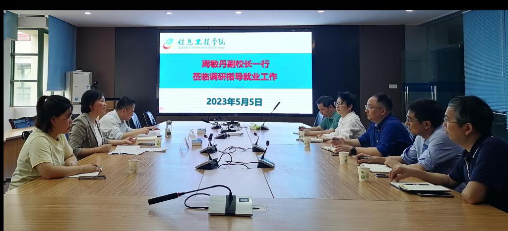 在信息工程学院,周敏丹肯定了学院在就业实习和就业育人项目等方面所作出的努力,强调要做好毕业生的分类管理,精准掌握毕业生的就业信息,稳固核心就业市场,以师生感情和就业品质为抓手,提升毕业生的就业满意度和专业匹配度。