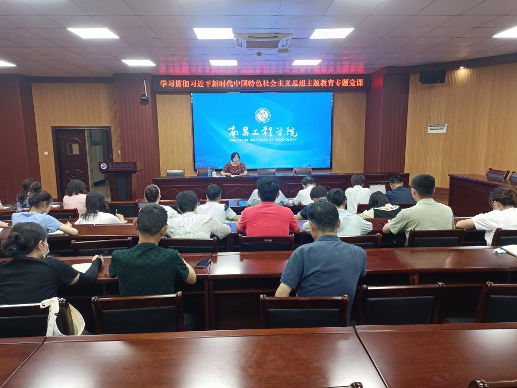 5月31日下午,校党委委员、副校长周敏丹在大学生活动中心B100讲授学习贯彻习近平新时代中国特色社会主义思想主题教育专题党课,团委、学生工作处、招生就业处、保卫处等部门60余名党员参加党课学习。