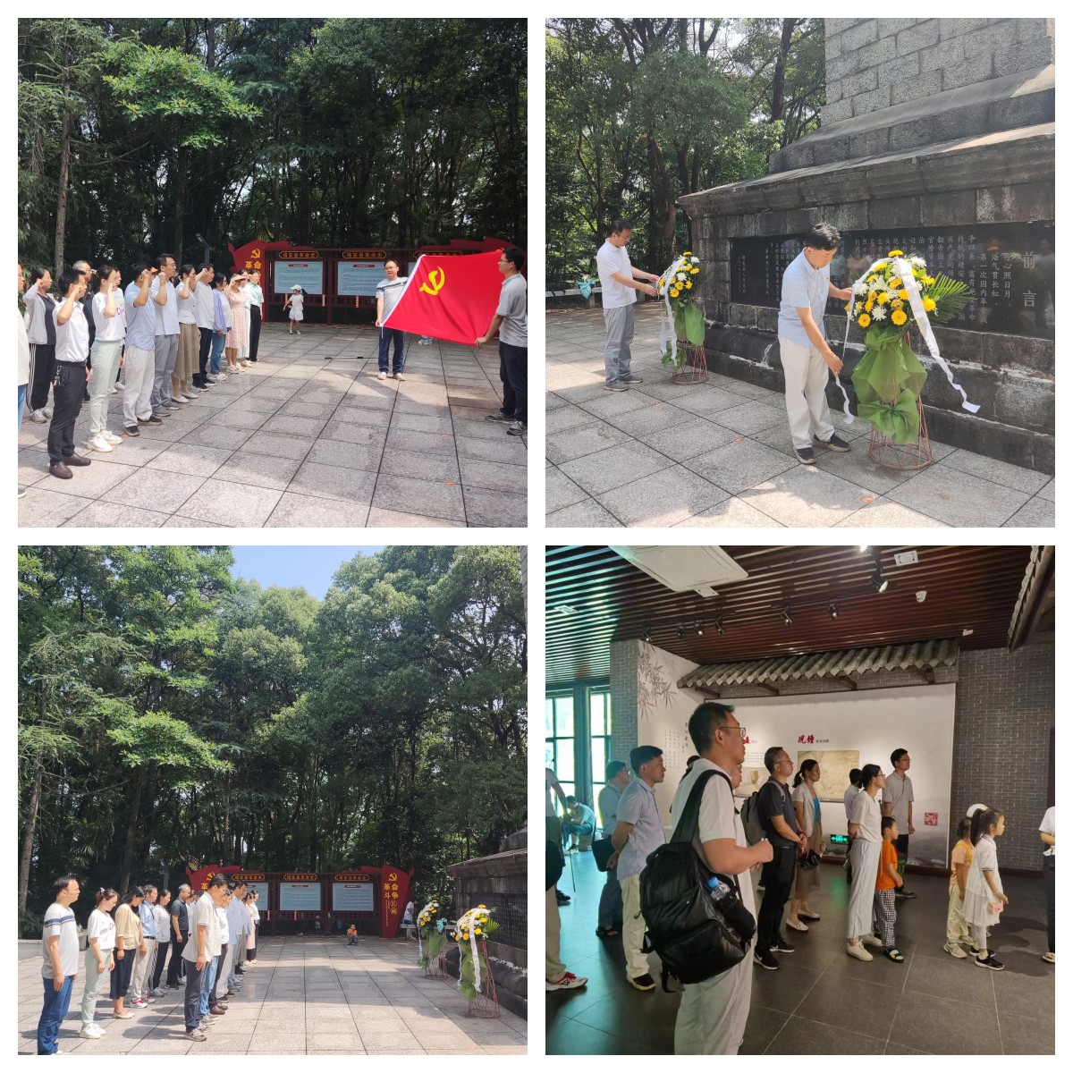 全体党员在革命烈士纪念碑前肃立默哀,四名党员代表敬献花篮,寄托哀思。在学院负责人的带领下,全体党员干部重温入党誓词。大家还参观了况钟纪念馆。