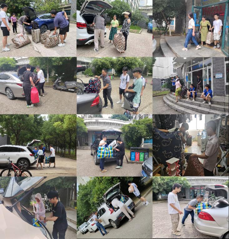 6月14日,经济贸易学院教师组建“学生宿舍搬迁教师志愿服务车队”,学生党员和团学干部组建“文明实践服务团”,用心用情用力协助非毕业班学生完成宿舍搬迁和服务等工作,切实为学生解忧办实事。