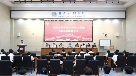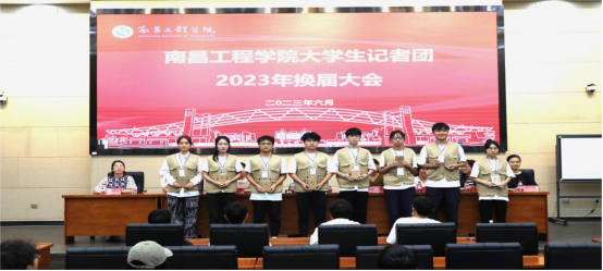 6月16日下午,我校大学生记者团2023年换届大会在教学北楼C105召开,校党委委员、党委宣传部部长、融媒体中心主任洪恩强出席并为大学生记者讲授思政课,党委宣传部、融媒体中心全体人员、大学生记者团全体成员共160余人参加会议。