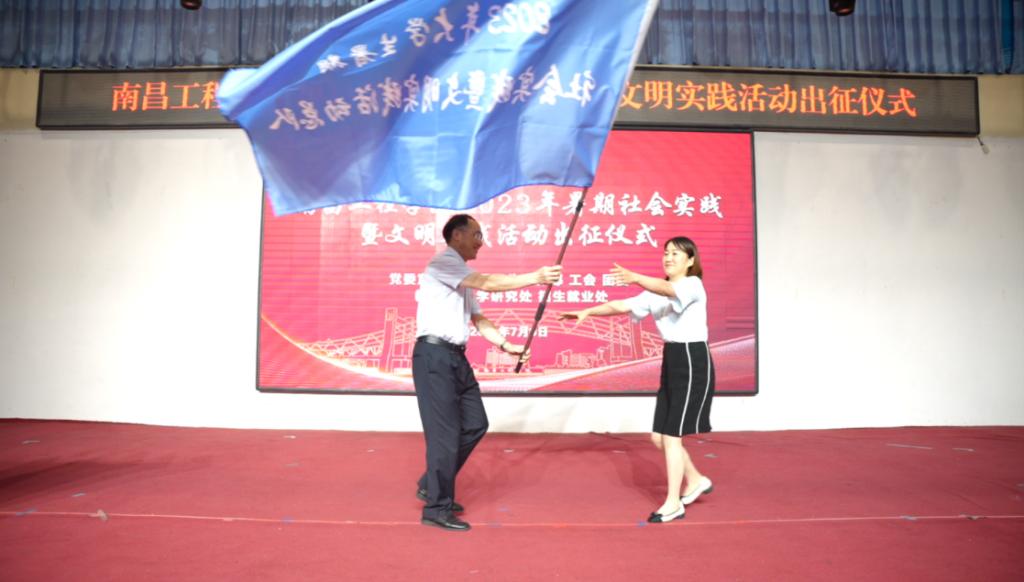仪式上,刘祖文为社会实践暨文明实践活动授总队旗并宣布出征。