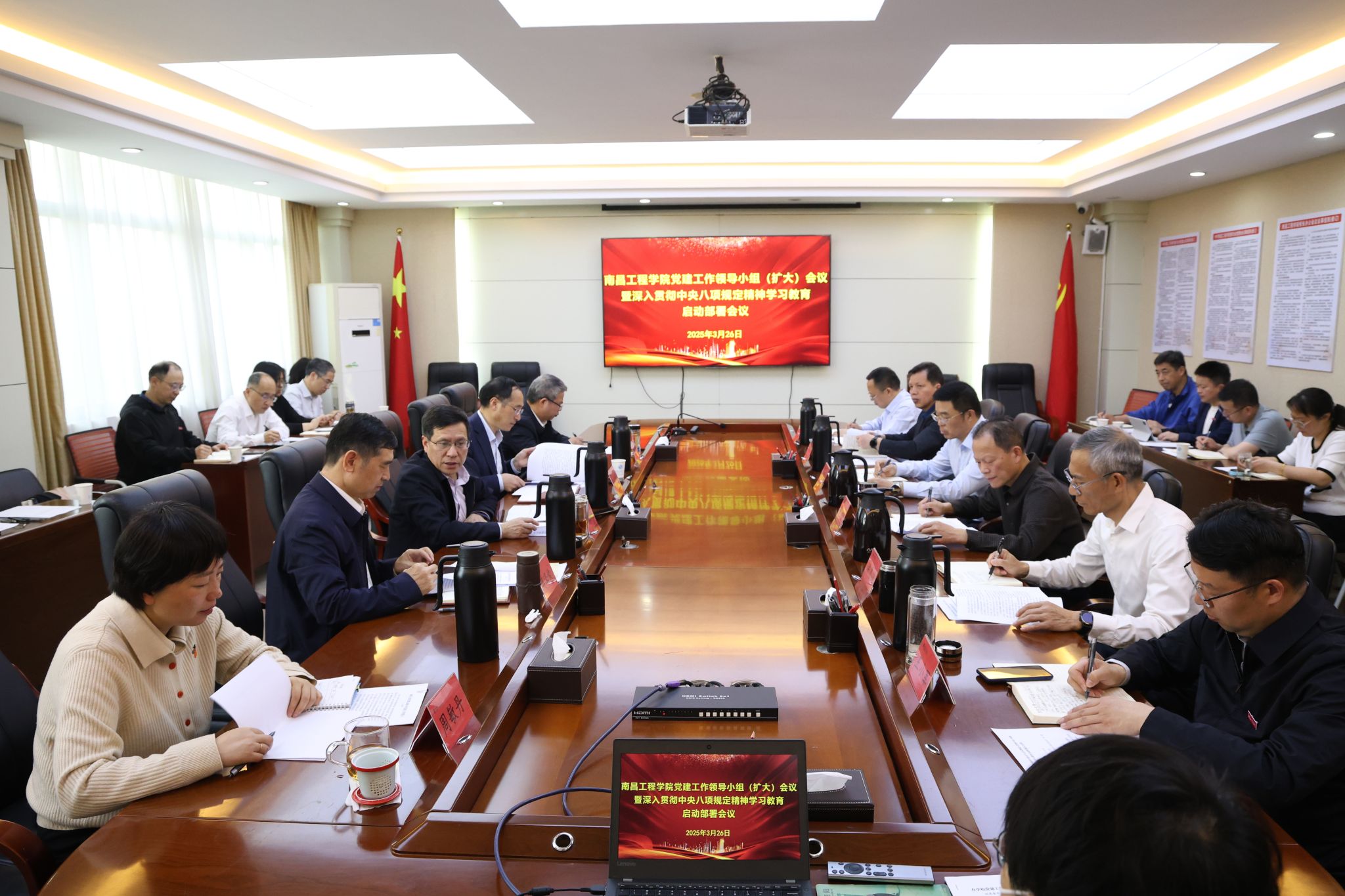3月26日上午,学校党委召开党建工作领导小组(扩大)会议暨深入贯彻中央八项规定精神学习教育启动部署会议,深入学习中央党的建设工作领导小组会议精神,认真传达学习贯彻全省党员队伍建设工作暨学习贯彻《全国党员教育培训工作规划(2024—2028年)》座谈会精神、上级关于深入贯彻中央八项规定精神学习教育有关文件精神,对全校开展深入贯彻中央八项规定精神学习教育进行安排部署。校党委书记汪胜前主持会议并讲话,校领导班子成员、党建工作领导小组成员单位负责同志、各二级党组织书记参加。