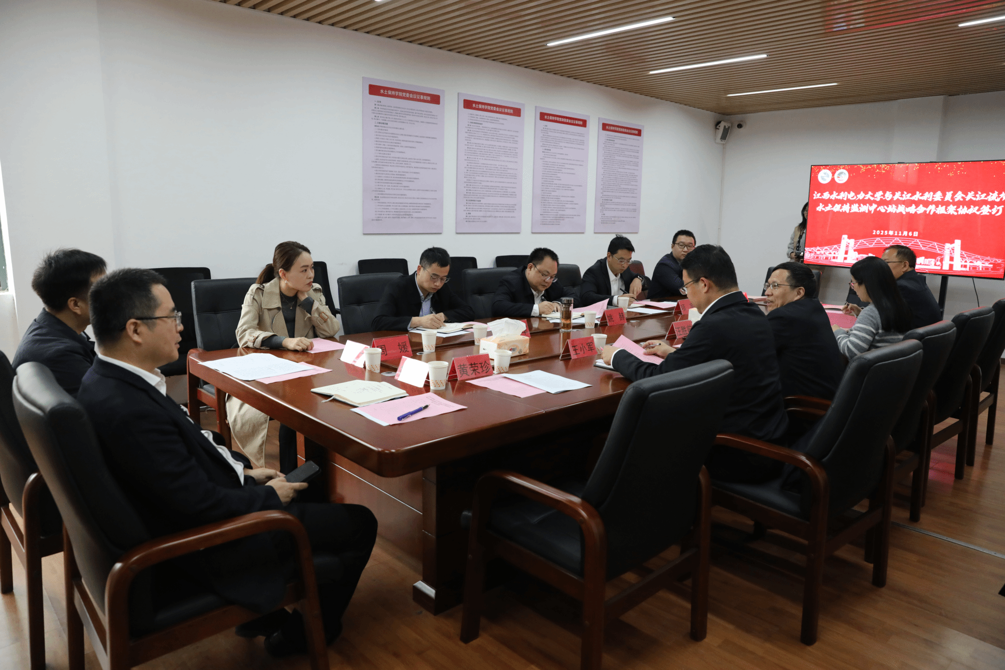 11月6日,我校与长江水利委员会长江流域水土保持监测中心站战略合作协议签约仪式在逸夫水利楼顺利举行。校党委书记汪胜前、长江水利委员会长江流域水土保持监测中心站主任姚赫出席仪式并致辞。校党委委员、水土保持学院院长王小军与姚赫分别代表双方签署协议。长江水利委员会长江流域水土保持监测中心站相关科室负责人、水土保持学院班子成员及骨干教师参加仪式。