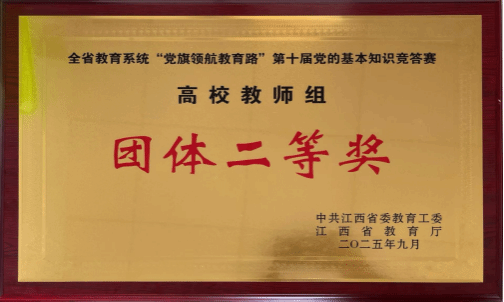 9月28日,全省教育系统“党旗领航教育路”第十届党的基本知识竞答赛决赛在江西中医药大学圆满落幕。校党委书记汪胜前,校党委委员、党委组织部部长阳子龙现场观摩。我校由李芳、邓雷、孙晓明、黄小枚组成的教师代表队凭借扎实的理论功底和出色的现场发挥,从全省众多高校队伍中脱颖而出,成功晋级决赛,最终斩获高校教师组团体二等奖,实现了学校在该项赛事中的历史性突破。