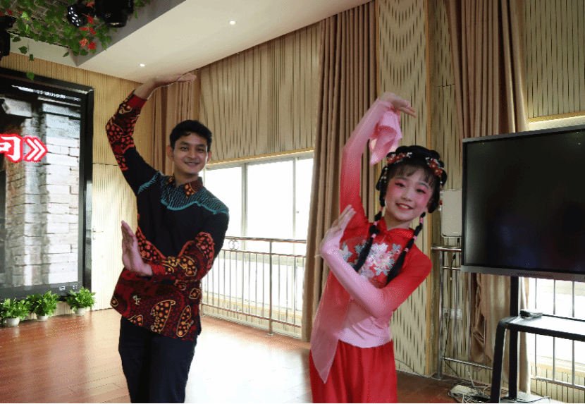 9月18日,“我在中国江西读大学”系列活动走进宜春高安,组织江西水利电力大学、江西中医药大学7名来华留学生体验中国传统戏剧、国家级非遗项目——高安采茶戏的韵味。大家穿上戏服,跟随老师学习经典剧目台词,领略戏曲意趣,在文化碰撞中实现与中华优秀传统文化的情感共鸣。校党委委员、党委宣传部部长、江西国际传播高校联盟秘书长洪恩强,高安市委常委、宣传部部长古红玲,宣传部副部长李莉,我校国际交流与合作处、高安采茶戏艺术中心、高安市第四小学相关负责人及师生代表参加。
