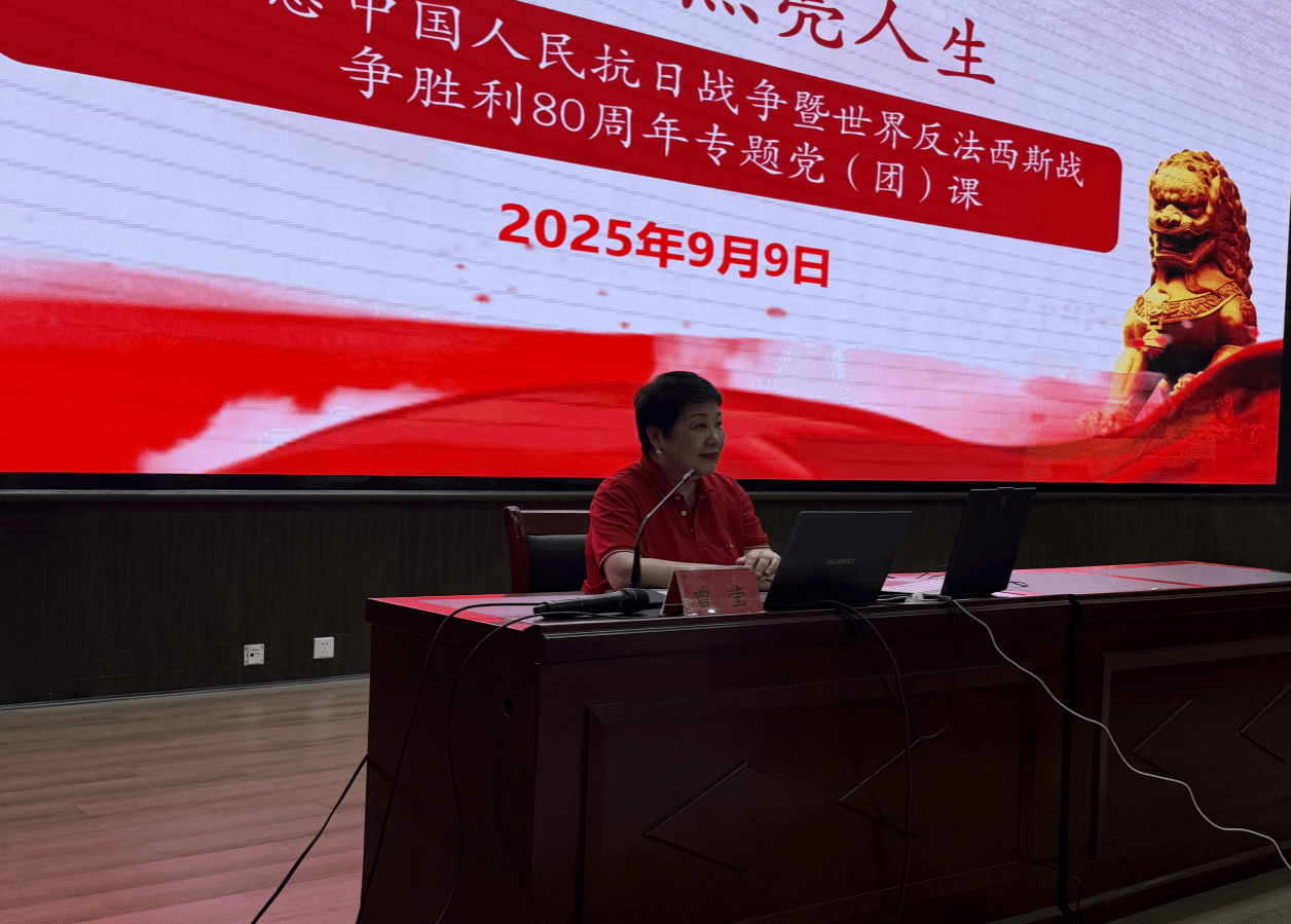 9月9日,纪念中国人民抗日战争暨世界反法西斯战争胜利80周年专题党(团)课在大禹学术报告厅举行。校党委副书记吴泽俊,校党委委员、党委组织部部长阳子龙,相关职能部门负责人、党员教师代表、第十七期“青马工程”大学生骨干培训班学员及青年学生代表共350余人参加。副校长周仲魁主持。