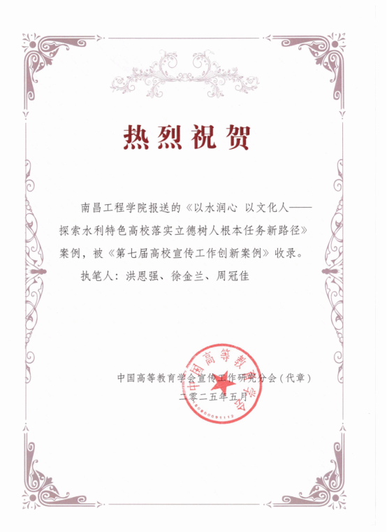 会上公布了第七届高校宣传工作创新案例推广展示结果,我校宣传工作案例《以水润心 以文化人——探索水利特色高校落实立德树人根本任务新路径》成功入选。