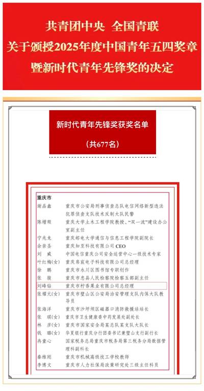 这一奖项由共青团中央、全国青联授予,旨在表彰我国优秀青年在推进中国式现代化中的贡献,集中展示新时代青年的精神品格和价值追求,激励引导全国广大青年积极投身强国建设、民族复兴伟业。此奖项共授予30名同志2025年度中国青年五四奖章、30个青年集体2025年度中国青年五四奖章集体、677名同志2025年度新时代青年先锋奖。(文/图 刘琴琴 责任编辑 潘旭 胡洁)